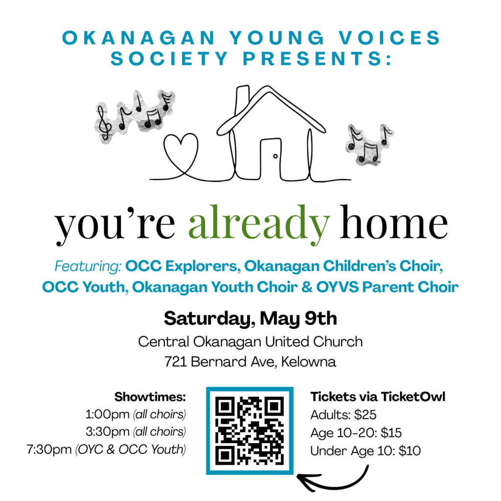 If you have questions about any of our choirs, please contact Artistic Director Frances Chiasson (250-869-6817) or (director@okanaganchildrenschoir.ca) or Okanagan Youth Choir Music Director, Taylor Bone (director@okanaganyouthchoir.ca).